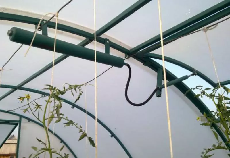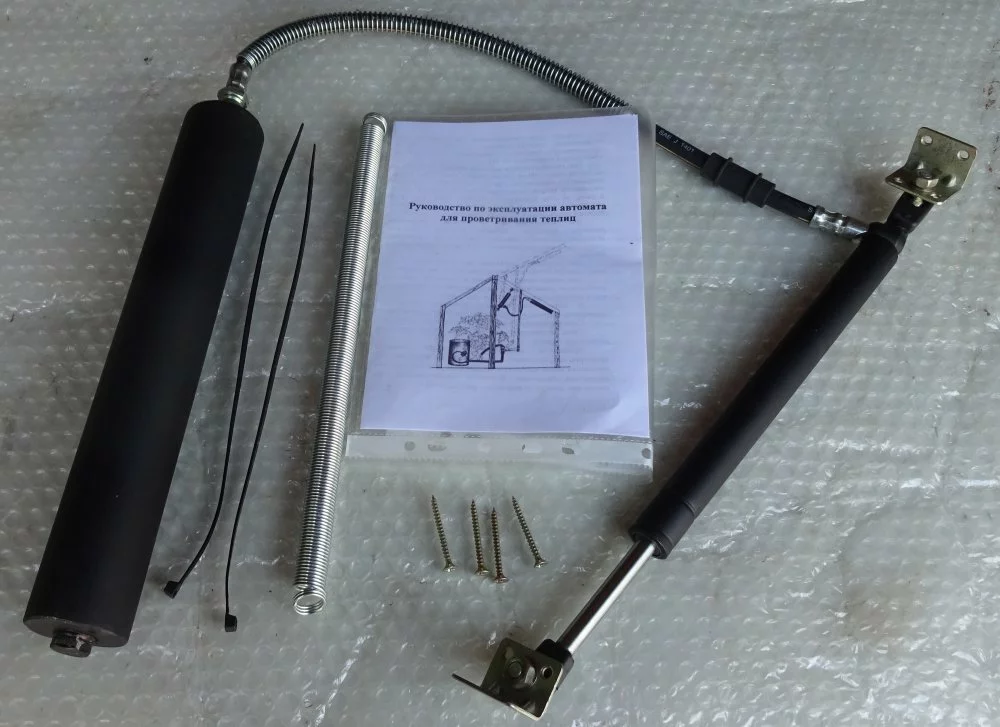 Автомат гидравлический для проветривания теплиц, работающий от солнечной энергии. Повышает скорость роста растений. Вес около 3 кг и усилие на штоке около 100 кг. Окупаемость за один сезон. Автомат гидравлический для проветривания теплиц автоматически открывает/закрывает форточку в вашей теплице, при достижении в ней идеальных для роста растений температур. Работа осуществляется в автоматическом режиме без дополнительных источников электроэнергии. Принцип работы основан на нагревании от солнца рабочей жидкости в термоцилиндре. Жидкость выталкивает поршень. Поршень открывает форточку вашей теплицы. С заходом солнца, снижении температуры в теплице, форточка закрывется. Установка проста и выполняется самостоятельно.
