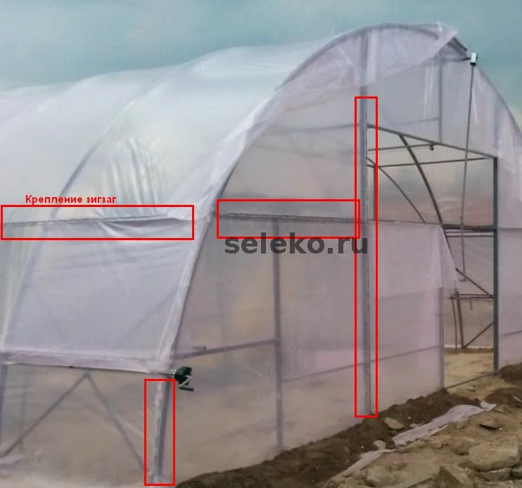 - Крепление дополнительной плёнки внутри теплиц, крепление 2–х плёнок.