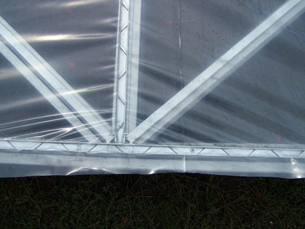 Существуют очень много вариантов крепления пленки к каркасу теплицы, но на наш взгляд самым эффективным и быстым является оцинкованный профиль Экстра (зиг-заг) для крепления тепличной пленки и второй пленки. Он обеспечивает надёжное и дешевое крепление плёнок, включая армированные, а также сеток, светозащитных материалов в теплицах на прямых и дугообразных участках теплиц с боковым открытием и участках теплиц с двумя плёнками, в том числе с подачей воздуха между плёнками (турбонадувом).